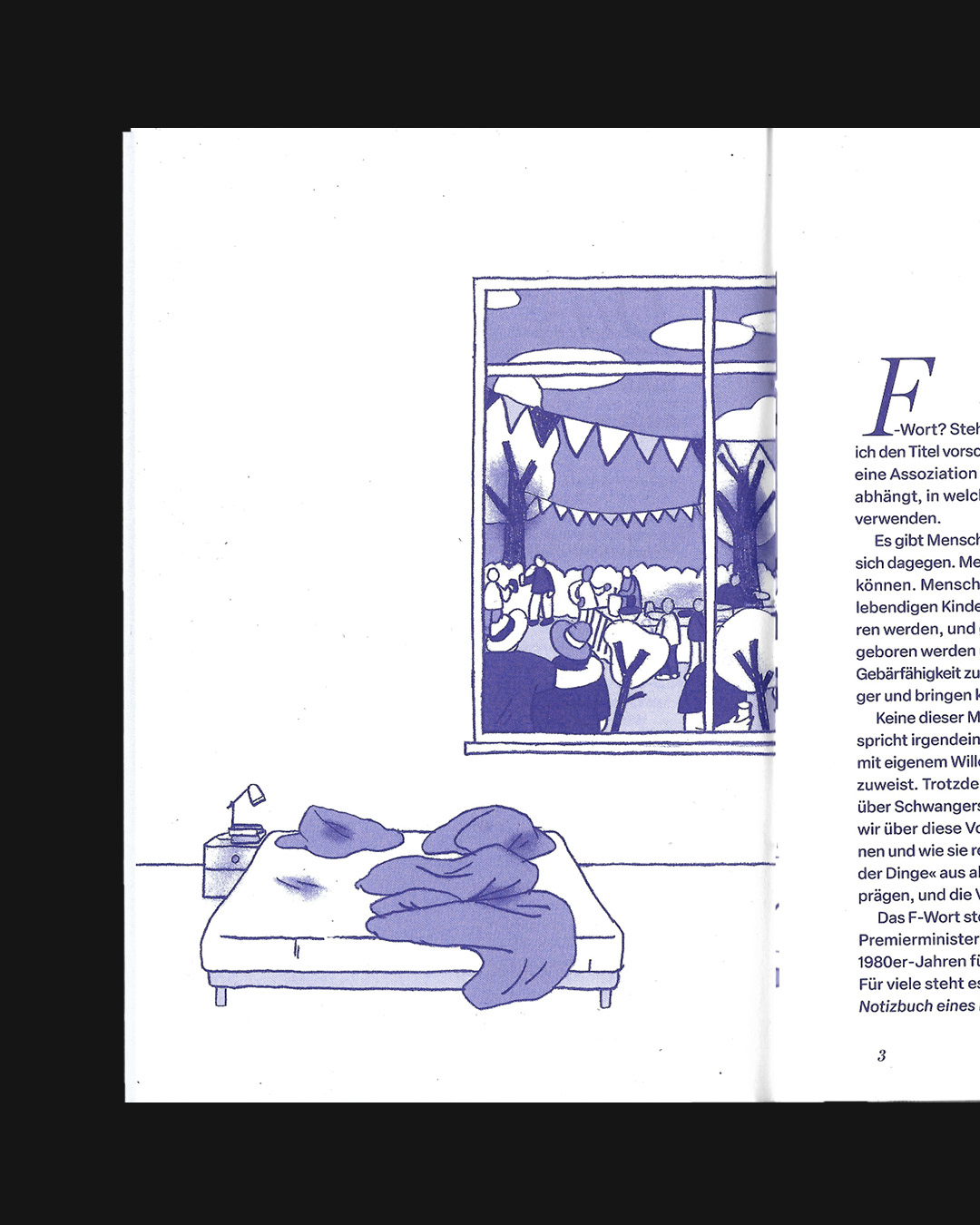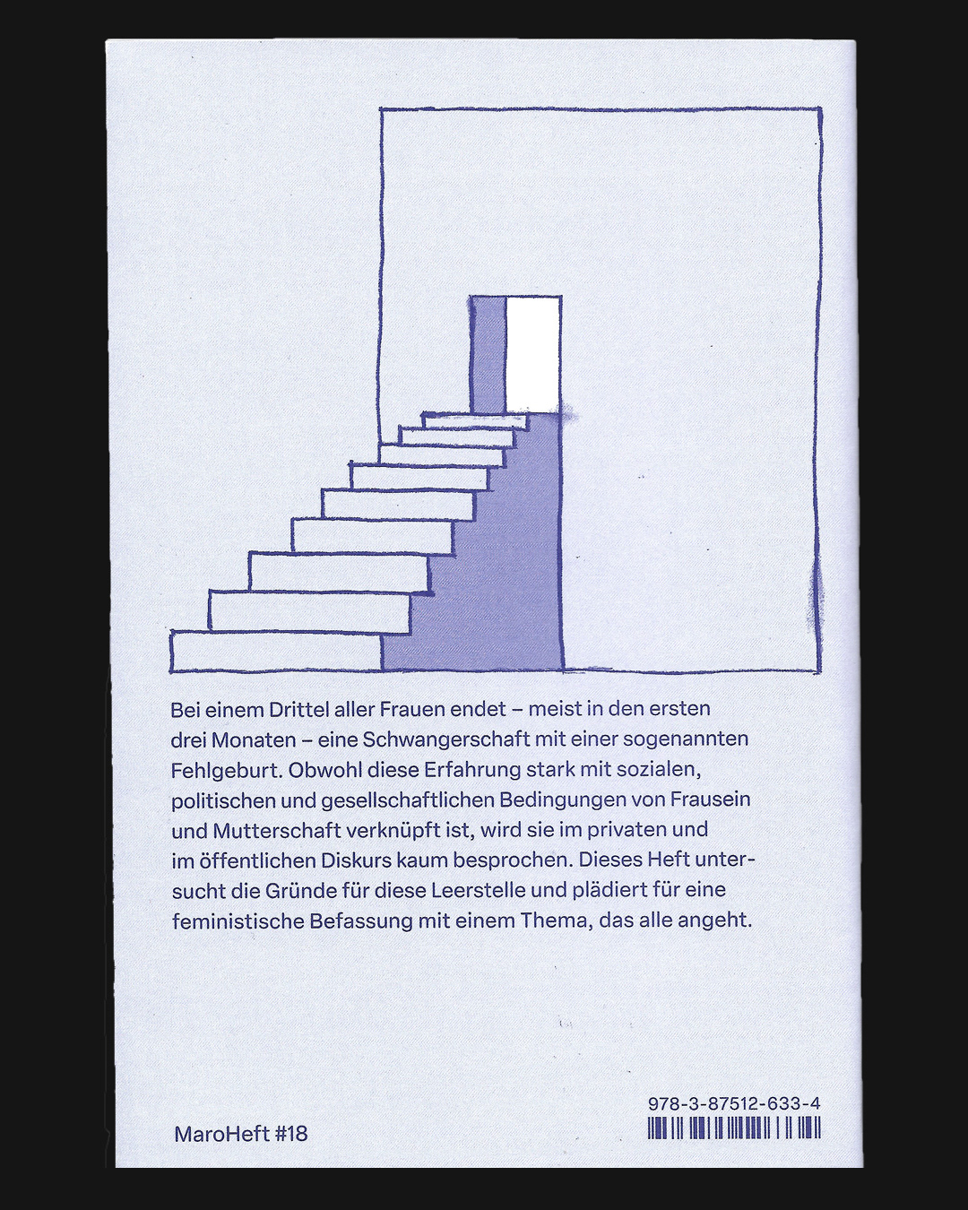 Das F-Wort Eine feministische Sicht auf sogenannte Fehlgeburten (Ein ansprechendes Heft) Jetzt im Buchhandel: Das Maro Heft #18, geschrieben von Christine Koschmieder, erschienen im Maro Verlag. Ich durfte diesem wichtigen Thema zeichnerisch Raum/Räume geben. „Ein Essay über Schuldgefühle und Scham, aktuelle reaktionäre Tendenzen in Politik und Gesellschaft und blinde Flecken im Kampf um Reproductive Rights. Bei einem Drittel aller Frauen endet – meist in den ersten drei Monaten – eine Schwangerschaft mit einer sogenannten Fehlgeburt. Obwohl diese Erfahrung stark mit sozialen, politischen und gesellschaftlichen Bedingungen von Frausein und Mutterschaft verknüpft ist, wird sie im privaten und im öffentlichen Diskurs kaum besprochen. Dieses Heft untersucht die Gründe für diese Leerstelle und plädiert für eine feministische Befassung mit einem Thema, das alle angeht.“